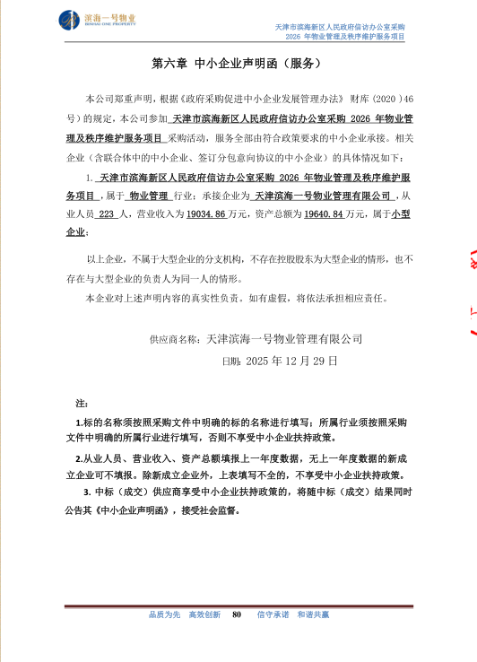 天津市滨海新区人民政府信访办公室采购2026年物业管理及秩序维护服务项目(项目编号:TJBH-2025-D-0221)成交结果公告